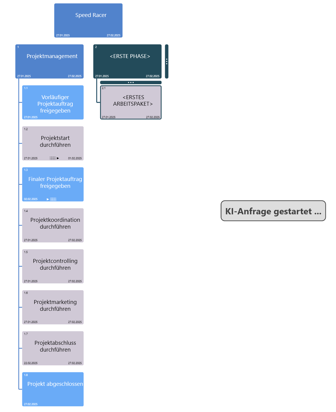 Sie erhalten einen vollständigen Projektstrukturplan, den Sie weiter bearbeiten können, bereits auf Basis einer kurzen Projektbeschreibung.