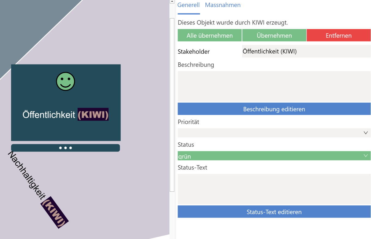 Per Mausklick öffnet sich der KIWI-Dialog, hier können sie zB die Anzahl der gewünschten Stakeholder festlegen.