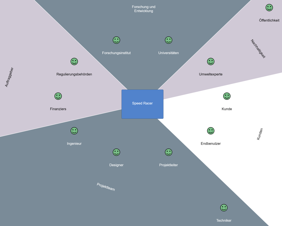 Nach wenigen Sekunden erhalten Sie eine auf die Projektdaten zugeschnittene Stakeholder-Analyse.